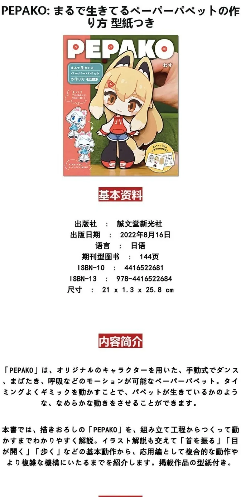 Cute Girl Paper Puppet PEPAKO Set 1 Books Cartoon Manga Book Official Art Formula Set Creative Handmade Japanese Edition